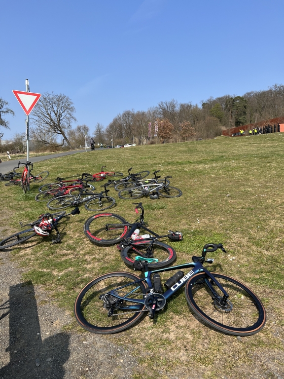Gravelfreundinnen und -freunde durften sich auf einer 79-Kilometerrunde, die sich weitgehend an der 72-Kilometertour der RTF orientierte, ausprobieren. Davon machte nur eine kleine einstellige Zahl GPS-geführt auf Wirtschafts-, Feld- und Waldwegen Gebrauch. Warum dies neue Angebot in der Gravelszene wenig Anklang fand, hat sich noch nicht erschlossen. War es der Schotter (= Gravel), der sich in unseren Breiten regelmäßig unter Beton und Asphalt versteckt, war es ungewohnt, dass ein Verein eine solche Tour organisiert anbietet, wo man sonst seine Freiheitsliebe und Ungebundenheit gerne vor sich her trägt? Auch wenn Frauen und Männer des RC 03 noch nicht hinter das Geheimnis gekommen sind, hat es doch Spaß gemacht, die Strecke zu erkunden, auch um sie in der Zukunft das ein oder andere Mal selbst unter die Räder zu nehmen.