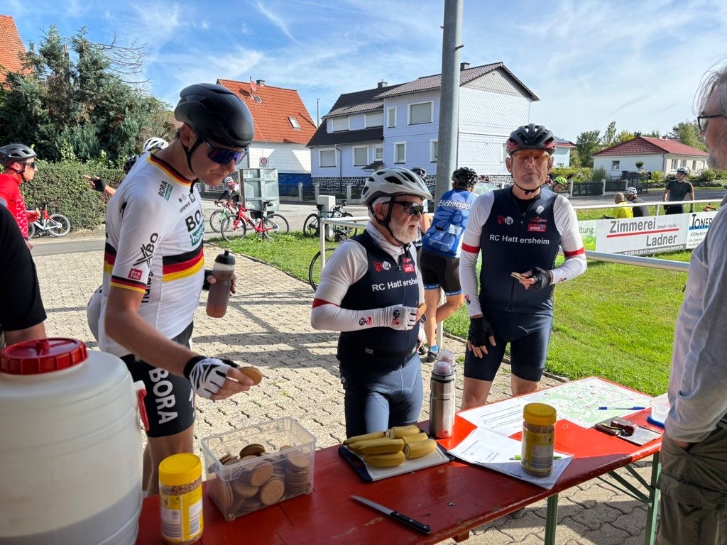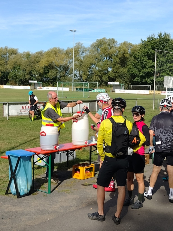 Unter den rund 500 Radlerinnen und Radlern vergessen wir nicht rund 20 Graveljüngerinnen und -jünger, die auf Wirtschafts- und Forstwegen GPS-geleitet auf der 82- oder der 55-Kilometertour abseits vom Straßenverkehr ihre „Kreise“ zogen. An den Servicepunkten in Münzenberg und Staden konnten sie gemeinsam mit den RTF-Teilnehmern Getränke und Verpflegung aufnehmen, aber auch die ein oder andere Hilfeleistung in Anspruch nehmen.