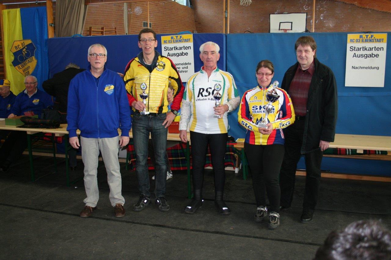 Die Siegerehrung konnte im Beisein von Herrn Bürgermeister Dr. Hertel, der die Radsportlerinnen und Radsportler im Namen der Stadt begrüßte und deren Leistungen würdigte, von unserem Fachwart für das Radtourenfahren, Werner Gundlach, durchgeführt werden. Von den BDR-Mannschaften setzte sich die SKG Frankfurt mit 17 Starterinnen und Startern durch, gefolgt vom RTC Sandhasen´88 Wölfersheim e.V. mit 11 und dem Radfahrverein Germania 04 Nieder-Weisel e.V. mit 7 Mannschaftsmitgliedern. Wie in den Vorjahren war keine Privatmannschaft angetreten. Unsere Glückwünsche sind bei den platzierten Mannschaften, aber auch bei jedem Einzelnen, der gestartet ist.