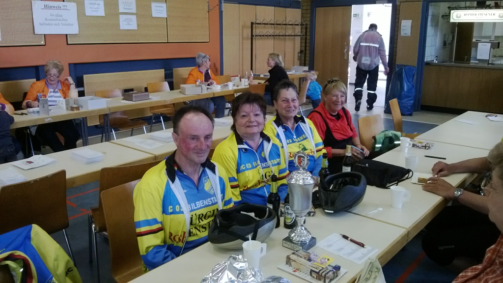 Der RSV 1922 Klein-Karben e.V. hatte zu seiner RTF-Veranstaltung zum Startort in Burg-Gräfenrode eingeladen. Für uns Ilbenstädter ein Muss, am Muttertag bei unserem Nachbarverein an den Start zu gehen. Leider hat Pankratius, einer der Eisheiligen, am Muttertag zugeschlagen. Dies begann mit Niederschlägen, die ich nicht mehr unter die Kategorie „Leichter Regen“ einordnen möchte, wie dies uns die Wettervorhersage glauben machen wollte und relativ heftigem Wind am Morgen; insgesamt ein unangenehmes Wetter. Einige von uns hatten sich in der Wahl der Kleidungsschichten schon eher am Sommer orientiert und büßten es mit heftigem Frieren, dass am Ziel das Trinken eines Kaffees unfallträchtig war. Die Betroffenen denken sicher noch an den morgendlichen Kälteschub zurück. Gegen Mittag haben sich die Temperaturen, die am Morgen um die 6° Celsius lagen doch auf stattliche 13° Celsius bewegt. Auch der Regen ließ dann nach. Am Nachmittag schien dann die Sonne, wie es sich für einen Muttertag gehört – für uns Radfahrer an diesem Tag zu spät.
