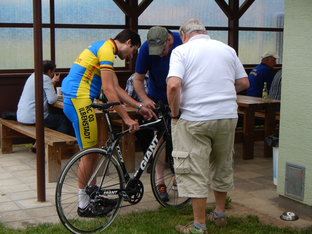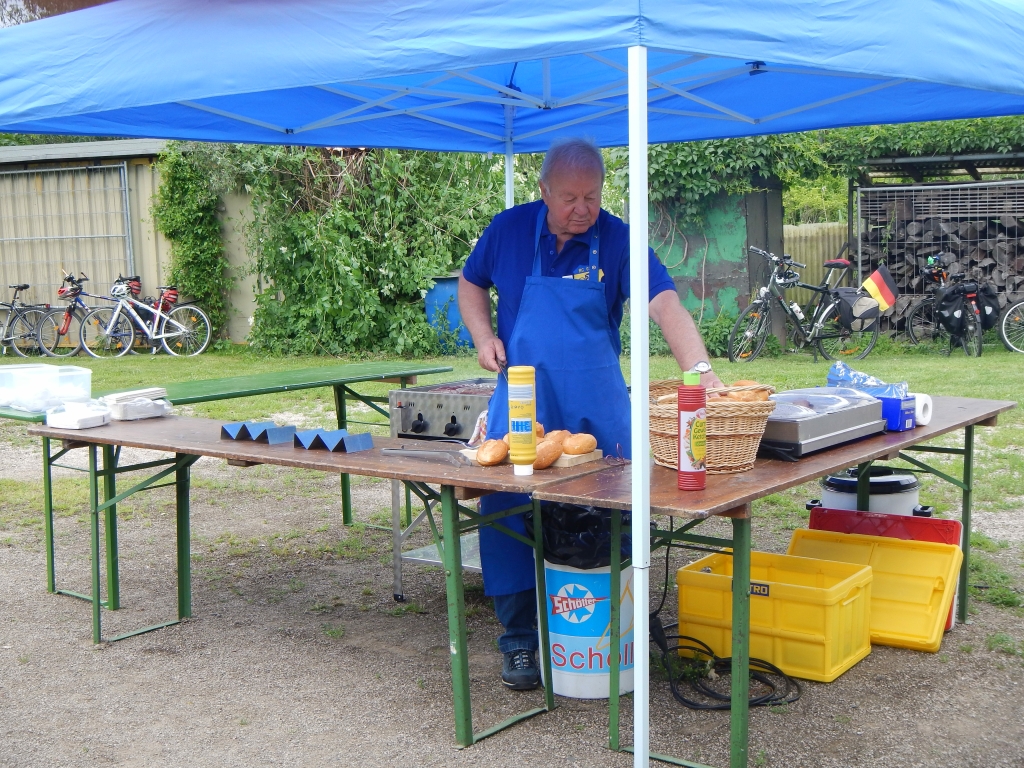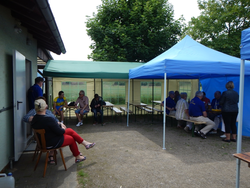 Das Grillfest ist eine Gelegenheit, bei dem sich aktive und passive Mitglieder des Vereins treffen und austauschen. Insbesondere sagen wir auch bei dieser Gelegenheit Danke an alle unsere Helfer bei den vielen Vereinsveranstaltungen. Dies sind insbesondere unsere arbeitsintensiven Radtourenveranstaltungen im Frühjahr, der „Wetterau-Vogelsberg-Rundfahrt“ am 24.03.2013 und im Herbst mit der Tour „Rund um Ilbenstadt“ am 08.09.2013. Hier benötigen wir sehr viele Hände, um eine Organisation zu stemmen, die eine Tour mit mehreren hundert Teilnehmerinnen und Teilnehmern erfordert. Die Teilnehmerzahlen sind stark wetterabhängig. Während wir im letzten Frühjahr bei überraschend sehr gutem Wetter 950 Starterinnen und Starter begrüßen konnten, war in diesem Jahr bei nasskalter Witterung die 250 nicht zu überschreiten. Trotzdem waren wir auf das Mittel von 400 – 600 Teilnehmern vorbereitet. Die organisatorischen Vorbereitungen rund um Start und Ziel, sowie Kalkulation und notwendigen Einkäufe lasten vorwiegend auf den Schultern von Peter Volk und seinen Helfern. Die sportliche Seite, die schon im Vorjahr mit der Anmeldung der Strecken beim Verband beginnt und sich über Ausschreibung, Werbung, Streckenauswahl, Ausschilderung, Besetzung der Kontrollstellen, Streckenservice, Abwicklung des formellen Teils am Start und Ziel bis hin zur Siegerehrung fortsetzt, wird von unserem Fachwart Werner Gundlach und seinen Helfern abgewickelt. Bei den angebotenen Strecken von 42, 75, 114 Kilometern, die im Herbst noch von der 156 Kilometer-Strecke und der Trimmtour ergänzt werden, erschließt sich der hohe personelle Aufwand. Doch müssen alle Teile gut verzahnt sein, damit das Ganze gelingt. Dies beginnt mit der Startkartenausgabe, die flüssig und ohne großen Rückstau abgewickelt werden muss, bis zur Versorgung mit Kaffee, Kuchen und einem kleinen Imbiss. Letzteres ist für viele das erste Frühstück, wenn sie kurz vor 07:00 Uhr am Start sind. Auch bei der Zielankunft muss die Abwicklung gesichert sein und die kulinarische Seite, die für die Sportlerinnen und Sportler nach einer stundenlangen Ausdauerleistung nicht ohne Bedeutung ist, muss auf den Ansturm vorbereitet sein.