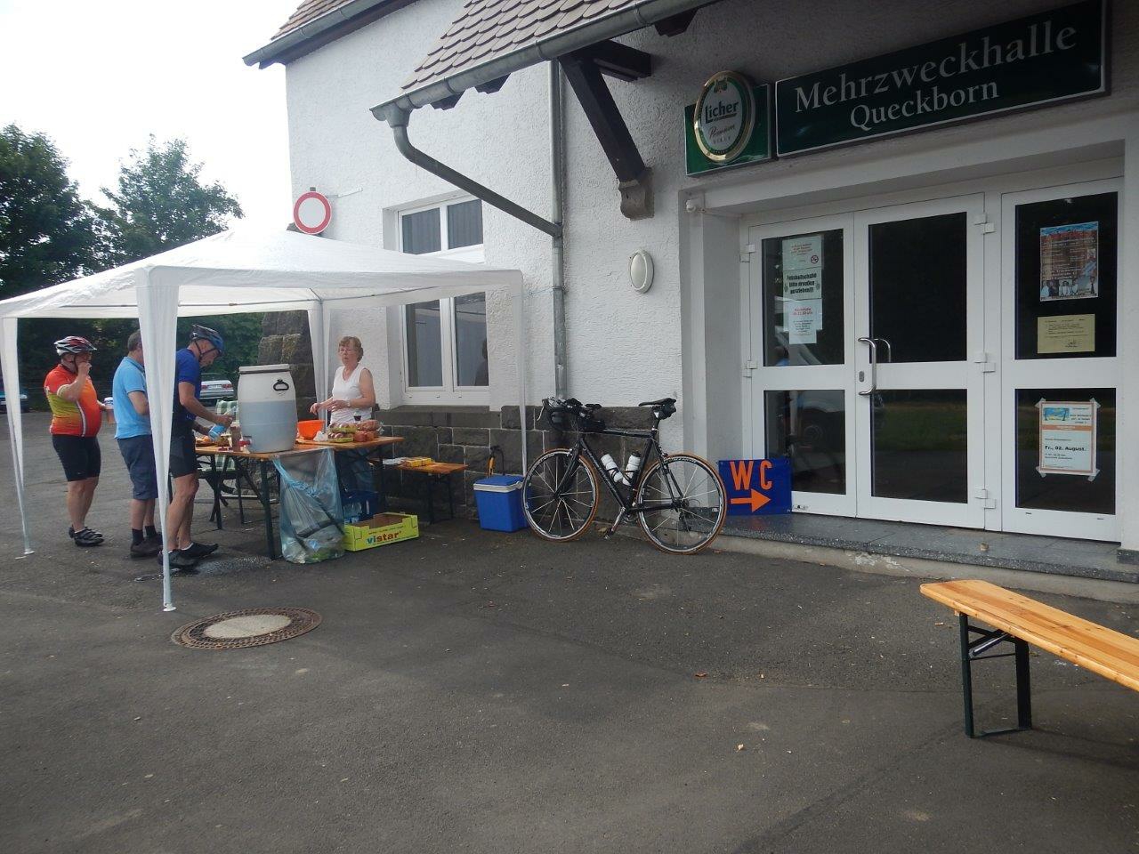 Trotz angekündigter Höchsttemperaturen, Regen und Gewittern sind wir vom Wetter gut bedacht worden. Bis auf ein paar Spritzer zur Mittagszeit, dürften wir alle trocken die Tour hinter uns gebracht haben, sieht man von den vergossenen Schweißtropfen ab. Auf und neben der Strecke zeugten kleinere und größere Pfützen, abgerissene Blätter und Zweige von der Gewittertätigkeit in der Nacht. Dies hat zwar dem einen und der anderen etwas Schlaf gekostet, aber das Wetter konnte sich vor dem Beginn der Hungener Radtouren austoben.