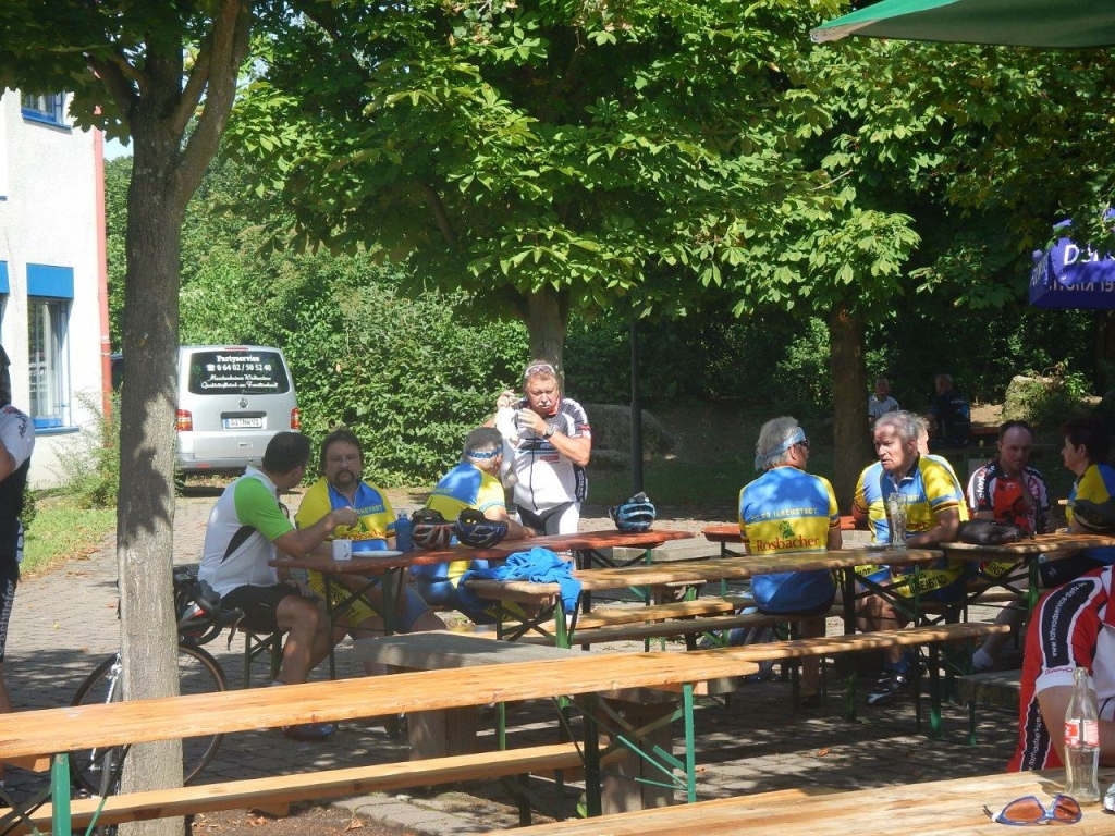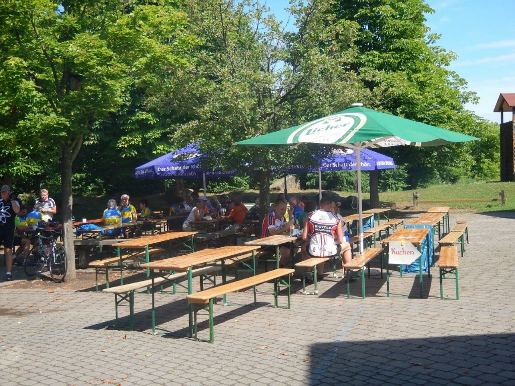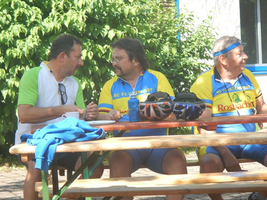 Am Start und Ziel war kein großer Betrieb. Jeder strebte schnell nach Hause, um der Hitze zu entrinnen oder aber auch, um das Formel I-Spektakel am Bildschirm zu verfolgen. Mann verbrachte aus diesen Gründen an diesem Sonntag nur eine relativ kurze Zeitspanne in geselliger Runde. Die schon erwähnten drei Regentropfen in der Mittagszeit lösten dann auch noch eine schnelle Flucht aus. Bei der sich anschließenden Siegerehrung haben nur noch wenige Unentwegte der Ehrung beigewohnt. Im Wettbewerb der BDR-Vereine hatte der RSC Grünberg mit 27 Starterinnen und Startern die Nase vorn, gefolgt vom RV „Wanderlust“ Gambach mit 22 Startern und dem RV Gießen-Klein Linden. Wir belegten mit dem RC 03 Ilbenstadt den vierten Platz mit 16 Starterinnen und Startern.