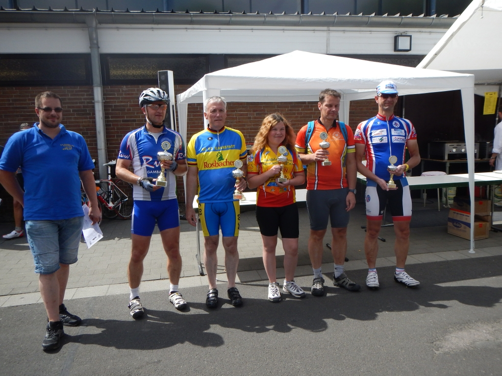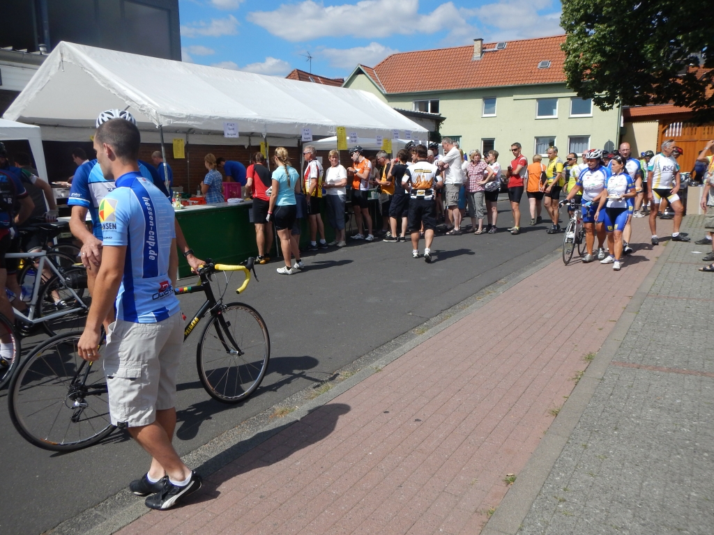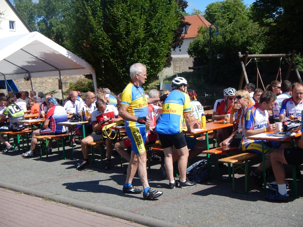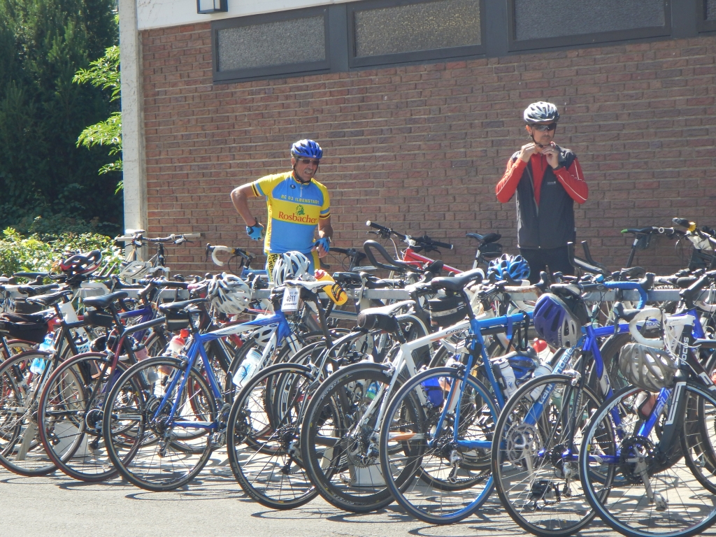 Doch verlassen wir das unerfreuliche Thema und wenden uns der Siegerehrung der BDR-Vereine zu. In diesem Wettbewerb mussten wir uns dem RV „Wanderlust“ Gambach knapp geschlagen geben, der mit 23 gemeldeten und 21 gestarteten Fahrern den ersten Platz belegte. Wir hatten 24 Fahrerinnen und Fahrer gemeldet, brachten dann aber tatsächlich nur 20 an den Start. Auf den Plätzen drei bis fünf folgten der RV Hungen (18 Starter), der RV Ober-Mörlen (14 Starter) und der RV Klein-Linden (14 Starter, weniger Vormeldungen). Dass uns der erste Platz knapp entging, ist ärgerlich, doch haben wir eine schöne Tour genießen können und konnten uns am Ziel rege austauschen.