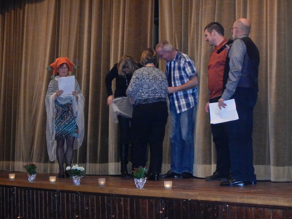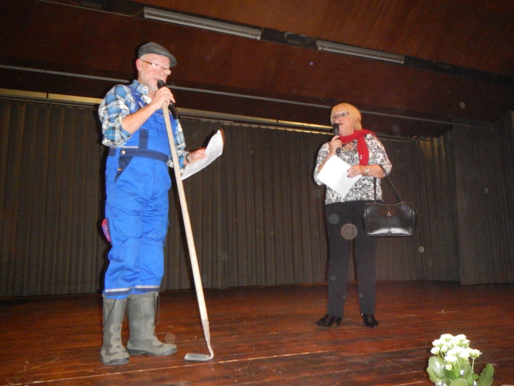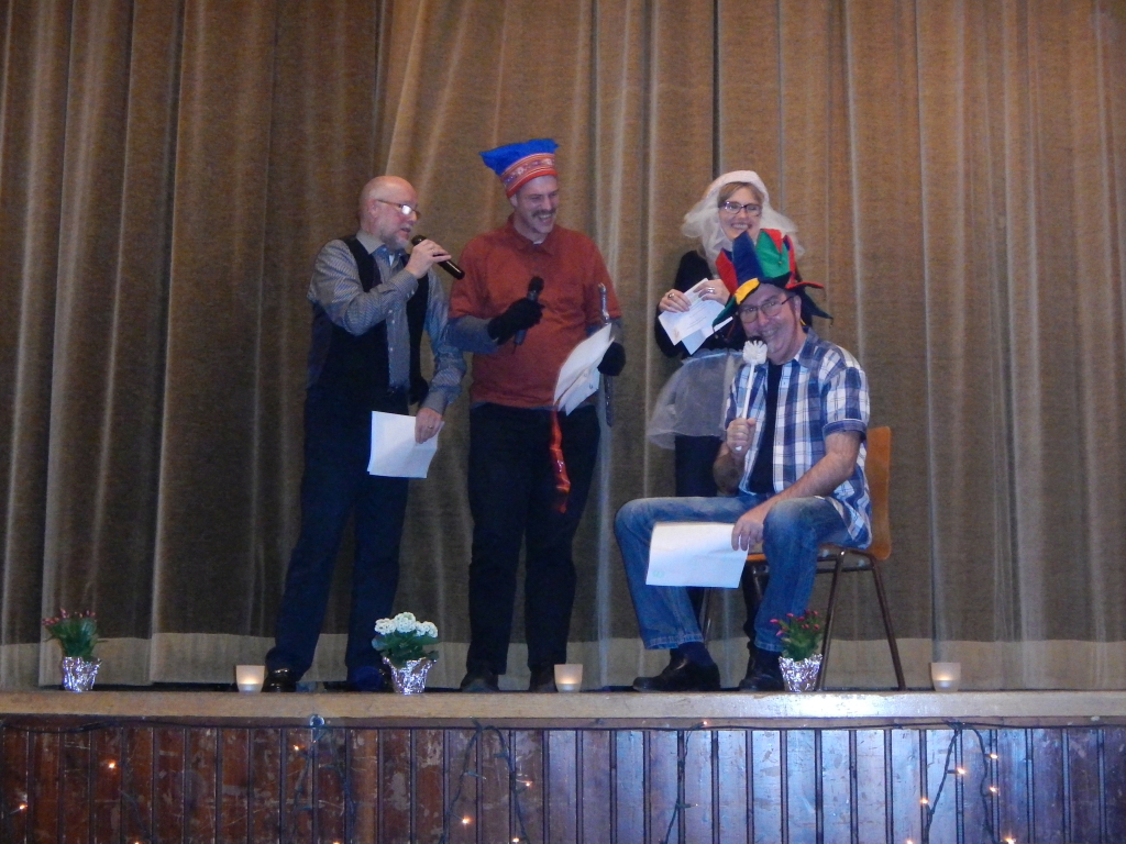 Markus Keil sorgte für einen schwungvollen musikalischen Rahmen, in dem das Programm des Abends kurzweilig eingebettet wurde. Der Obbornhofener Kunstradfahrer Helmut Rühl, dessen Talente nicht nur auf das Einrad beschränkt sind, moderierte den Abend und unterhielt uns mit Sketchen, in denen ausgewählte Frauen und Männer des Publikums die Hauptrollen ausfüllen mussten.