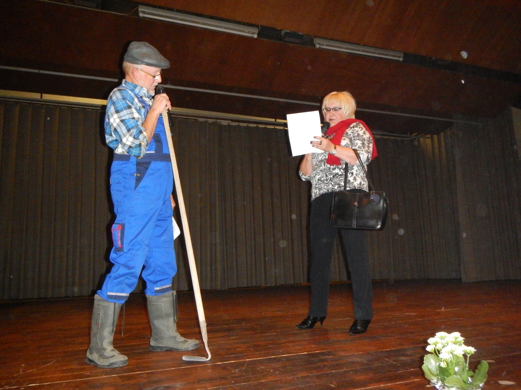 Nach einer kurzen Gesangseinlage von Markus Keil und einem Sketch von Claire Herbert und Helmut Rühl über die Schwierigkeiten der Berliner Agrarbürokratie mit findigen Kartoffelbauern, die Pommes frites, Bratkartoffeln und mehr unmittelbar vom Acker holen, ging es in die nächste Ehrungsrunde.