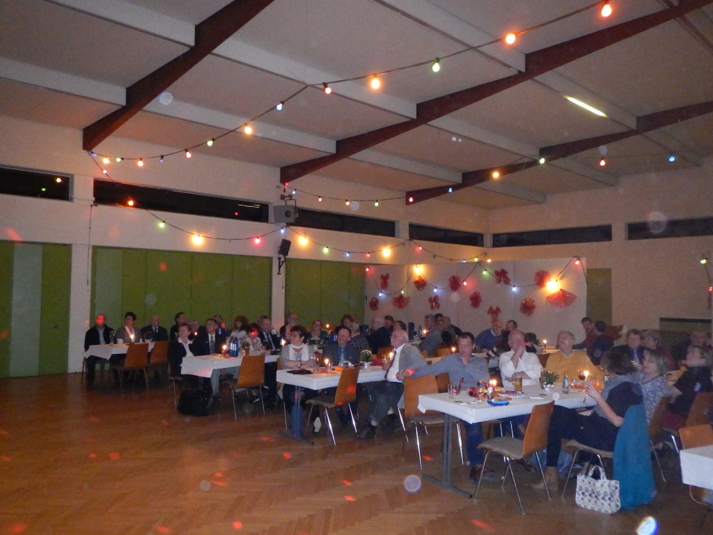 Für unsere Mitglieder und Freunde begann der feierliche Saisonabschluss mit einem Sektempfang, bevor man in den liebevoll geschmückten und in stimmungsvolles Licht getauchten Saal des Bürgerhauses Ilbenstadt ging. Für die Programm- und Saalgestaltung ist dem Vorstand unter der Leitung von Christine und Peter Volk zu danken.