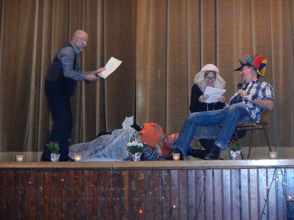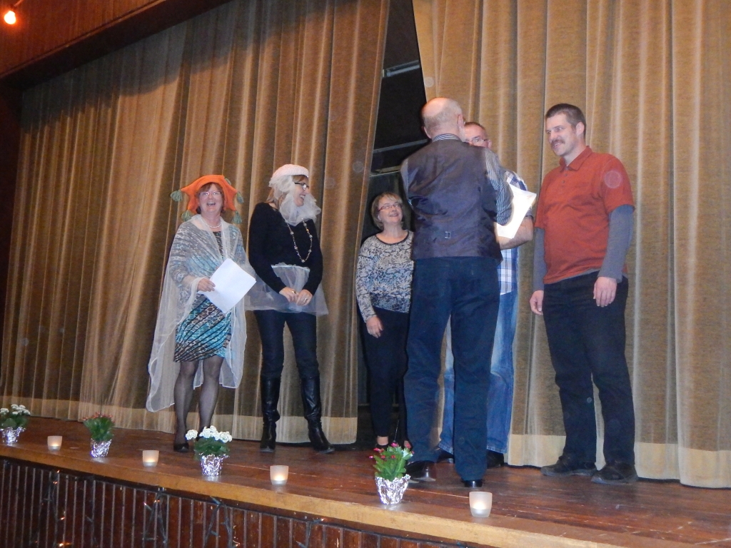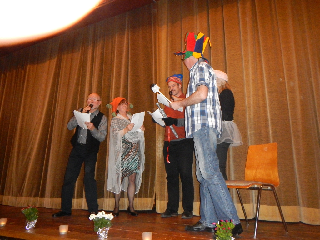 Vor der Ehrung der Herrenklasse im Radtourenfahren (RTF) gab es Musik und wieder einen Sketch von Helmut Rühl, der mit König, ergebener Königin, der liebreizenden Prinzessin und einem feurigen Herzog in ein Drama zog, das mit dem Tod alller Beteiligten endete. Lediglich die “Requisite” Christine Volk überlebte. Eine völlig neue Wirkung erfuhr das Stück durch die fehlende Lesebrille des Herzogs, der zur Freude des Publikums seine Feurigkeit durch die zusammengekniffenen Augen unerwartet interpretierte.