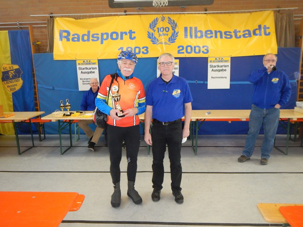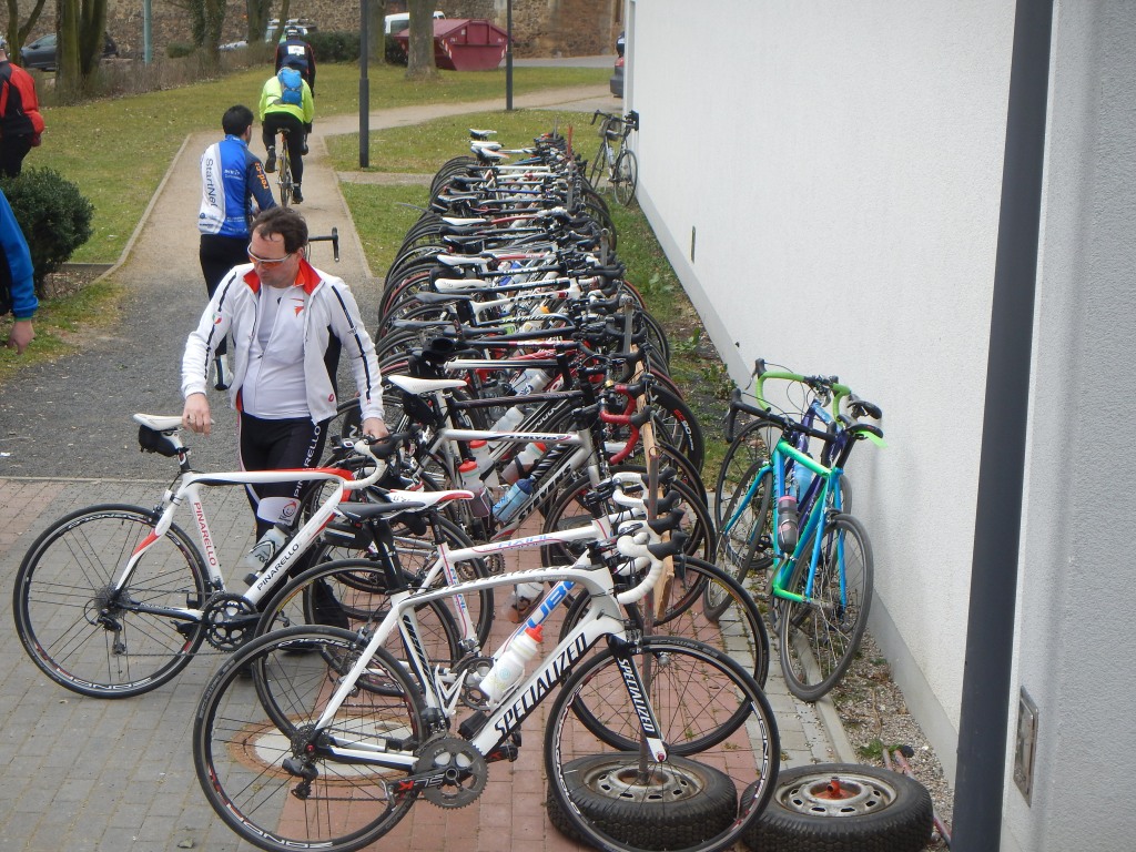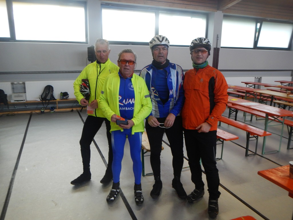 602 (!) Radsportlerinnen und Radsportler waren in Ilbenstadt am Start. Ein tolles Ergebnis. Respekt ist allen zu zollen, die sich doch unter widrigen Wetterbedingungen auf den Sattel geschwungen haben und eine unserer drei angebotenen Strecken von 42, 75 oder 114 Kilometern unter die Räder zu nehmen. Die Temperaturen, die sich aus dem Keller zaghaft in den einstelligen Bereich bewegten, wurden durch den kalten Wind, der sich allen hartnäckig entgegenstellte, zusätzlich als unangenehm empfunden. Dass es auf der Strecke frisch sein würde, hatte sich den Vorhersagen der letzten Tage als sicher entnehmen lassen. Die angekündigte Sonne ließ sich leider nur sporadisch blicken. Passend zum Saisonbeginn zeigt die Wetterau-Vogelsberg-Rundfahrt – jetzt auch zweite Tour im Rahmen der Wetterau-Trophy – ein moderates Höhenprofil. Die Natur ist in der leicht welligen Landschaft der Wetterau noch nicht so richtig erwacht. Die Felder sind häufig schon bestellt, allein das Grün lässt auf sich warten. Es ist der Reiz vieler Touren in der Wetterau, dass sich diese im Wechsel der Jahreszeiten immer wieder anders darstellen. Zu den optischen Reizen kommt die sportliche Herausforderung, die von dieser Hügellandschaft in Verbindung mit der gewählten Streckenlänge und dem Druck auf die Pedale ausgehen. Die 42-Kilometer-Runde bot als Prüfstein eine längere Steigung hinter Steinfurth in Richtung Wölfersheim-Södel. Die erste längere Steigung auf der 75-Kilometer-Tour haben wir der Streckenanpassung über Griedel, Gambach und Ober-Hörgern opfern müssen. Wer über 114 Kilometer auf die Strecke ging, stieß bis in den Landkreis Gießen vor. Mit Grünberg, der Ende des 12. Jahrhunderts von Landgraf Ludwig III. von Thüringen gegründeten Stadt, erreichten unsere unerschrockenen Radlerinnen und Radler den Punkt, der die Namensgebung der Wetterau-Vogelsberg-Rundfahrt noch rechtfertigt: Auf der Gemarkung der Stadt Grünberg liegt noch ein winziger Teil des nordwestlichen Vogelsberges. Doch die Namensgebung unserer Tour beruht im Ursprung tatsächlich auf Strecken bis in den Vogelsberg hinein. Im Laufe der 38 Jahre hat sich die Streckenführung im Frühjahr aus dem Vogelsberg hinaus bewegt, der Tourname blieb jedoch. Dafür laden wir alle am 13. September zu unserer Herbsttour „Rund um Ilbenstadt“ ein, die den Vogelsberg in Oberschenkel- und Wadenmuskulatur erfahrbar macht.