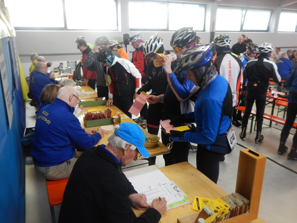 Der Tag war auch für unserer Helferinnen und Helfer anstrengend, die sich gegen den Wind bei kühlen Temperaturen stemmten, um den Service auf und neben der Strecke auf einem guten Niveau zu halten. Das erstmals eingesetzte elektronische Anmeldesystem scan&bike hat uns jedoch schwitzen lassen. Die Hessenpremiere ist ohne Frage geglückt, das System überzeugt in Geschwindigkeit, dem Startkarten- und dem Startnummerndruck sowie der Teilnehmerliste, die uns – wenn zukünftig die Anmeldung flächendeckend über den QR-Code erfolgt – nicht im Zweifel lässt, wer noch auf der Strecke ist. Zwischen 8 und 9 Uhr war das System jedoch überlastet, da der Ansturm zu groß war; hier hätten wir ein zweites System einsetzen müssen. Nach dieser Lernphase werden wir es im Herbst besser machen. Versprochen!