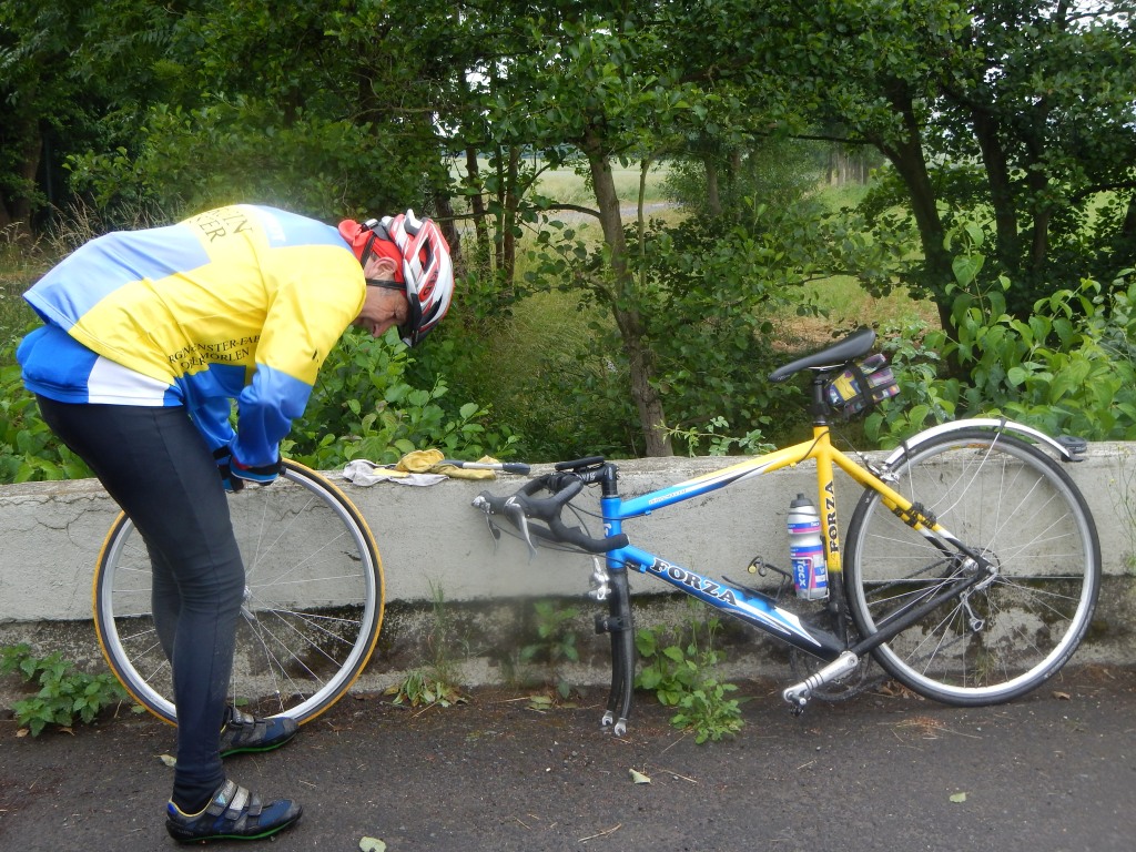 Der Sommerbeginn war von der Wettervorhersage bis zum Nachmittag mit relativ kühlen Temperaturen, aber trocken vorausgesagt. Das morgendliche Erwachen zeigte Regen und nasse Straßen. Gut, eine Vormeldung zur RTF in Nieder-Weisel war abgegeben und eine Verabredung getroffen. Auf Nachfrage äußerte ich ohne zu zögern, dass ich selbstverständlich auch bei Regenwetter auf die Strecke gehe.