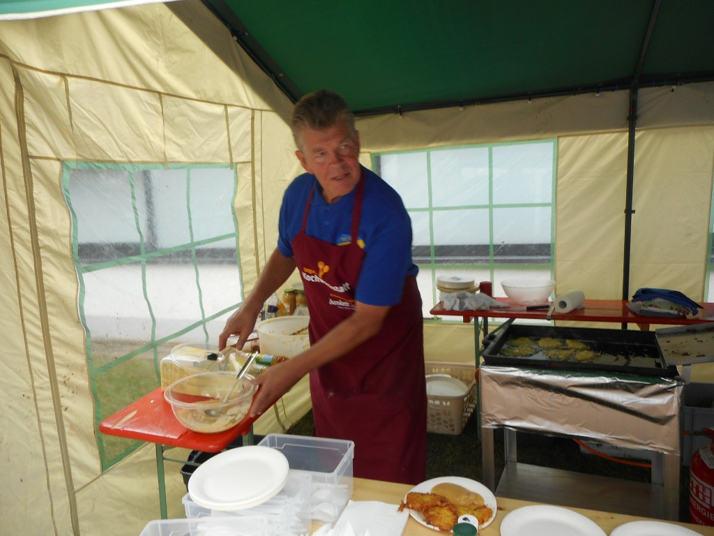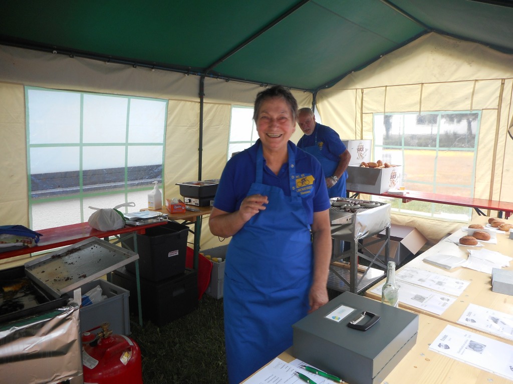 Am Start und Ziel war wieder Gelegenheit in unserem Veranstaltungszelt hinter der Gymnastikhalle die Veranstaltung ausklingen zu lassen. Die Kuchentheke, für die wir an dieser Stelle den Spenderinnen und Spendern danken, war gut gefüllt, Kartoffelpuffer mit Apfelmus und Leckeres vom Grill rundeten das Angebot ab.