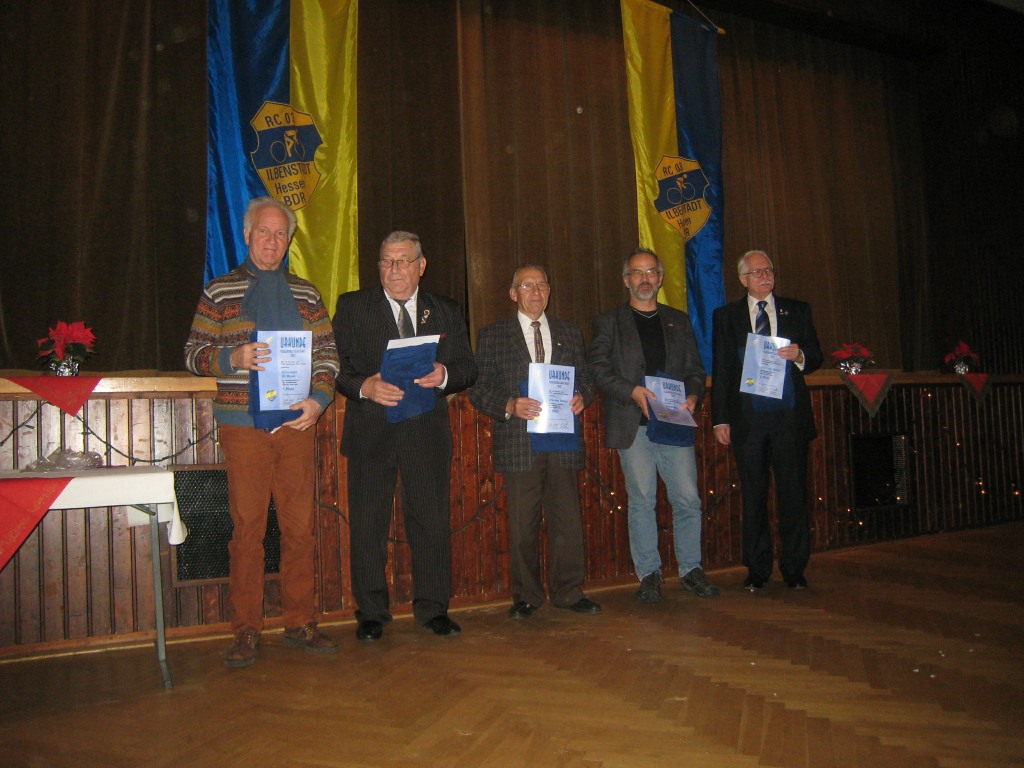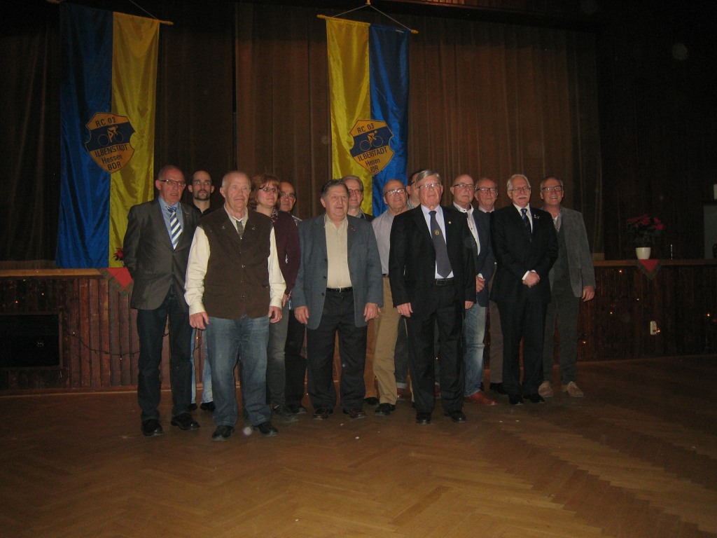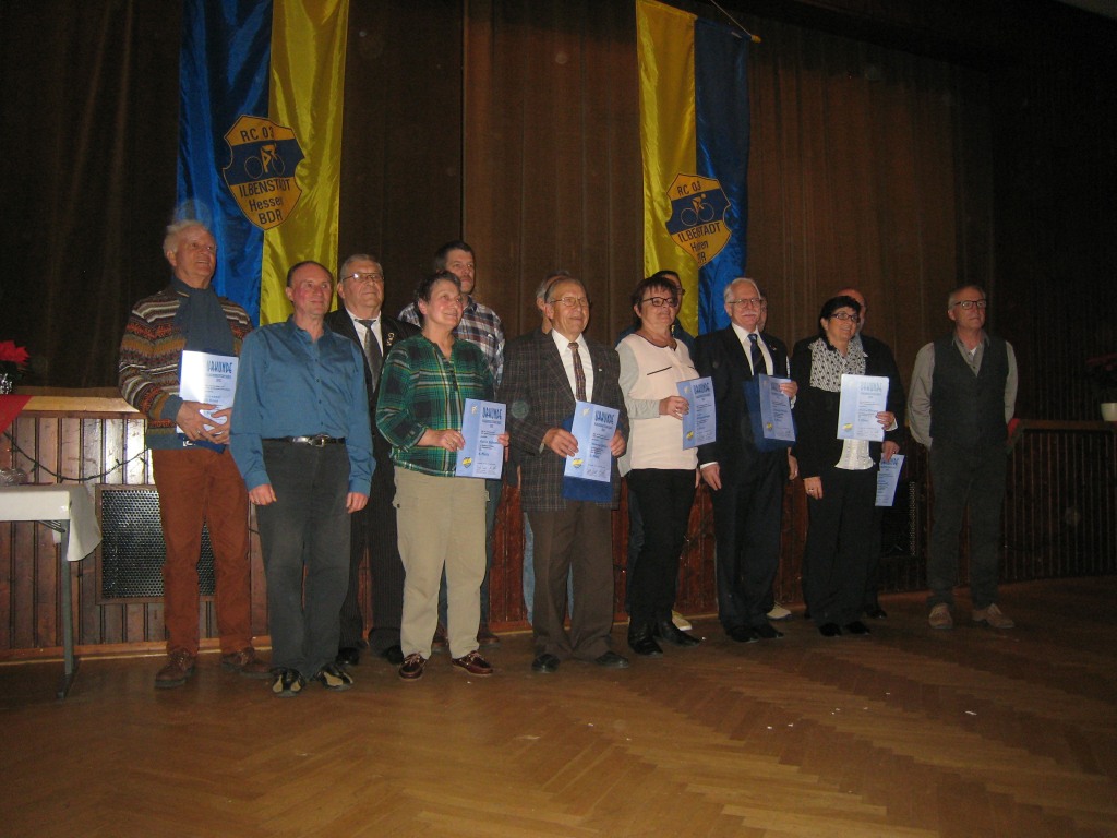 Im RC 03 Ilbenstadt wird der Saisonabschluss, in dessen Mittelpunkt die Sportlerehrung steht, traditionell im November gefeiert. Auch in diesem Jahr sind die Mitglieder der Bundesehrengilde aus Mittelhessen unter ihrem Obmann Herbert Bender unsere Gäste gewesen. Wir haben uns gefreut, dass sie zahlreich unserer Einladung gefolgt sind. Darunter auch der Jubilar Horst Michel aus Steinfurth, der anlässlich seines 75-jährigen Geburtstages die Glückwünsche und ein Präsent von Horst Köhler, dem Schatzmeister der Bundesehrengilde entgegen nehmen durfte. Auch Klaus Neumann, der Vorsitzende des Radsportbezirkes Taunus-Wetterau war unter unseren Gästen. Besonders gefreut hat uns, dass Doris Hof, die Ehefrau unseres verstorbenen Ehrenvorsitzenden Theo Hof, den kurzweiligen Abend mit uns verbracht hat.