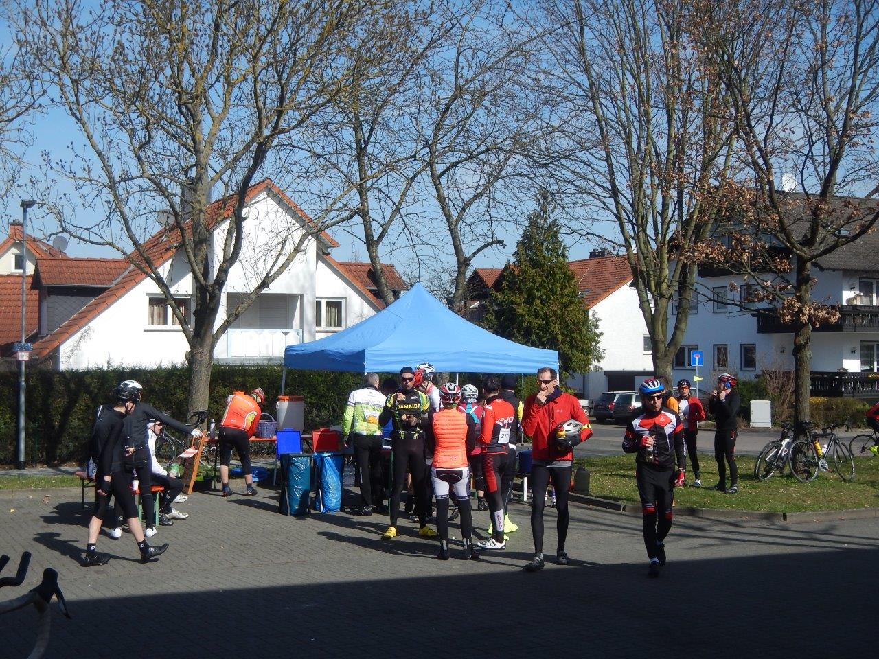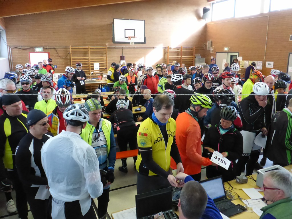 40 Jahre Erfahrung in der Veranstaltung von Radtourenfahren und doch gibt es immer wieder Herausforderungen, denen man sich stellen muss, die Maßstab für Folgeveranstaltungen werden. Der Wetterbericht gab Tage vor der Veranstaltung Hinweise auf einen regnerischen Sonntag. Je näher der Termin rückte, desto besser die Wetterentwicklung, um Freitag/Samstag wieder auf kühler und wechselhaft zu schwenken. Die Einkäufe für die Kontrollstellenausstattung und den Start-/Zielbereich wurden nach oben korrigiert. Es wurden rund 300 Teilnehmer mehr über der typischen Teilnehmerzahl bei trockenem Wetter kalkuliert. Der Sonntag startete kühl und sonnig und es entwickelte sich ein toller Tag zum Radfahren. Alles was in die Pedale treten konnte, stand beim RC 03 Ilbenstadt am Start und brachte die Männer und Frauen an der Anmeldung ins Schwitzen. In knapp zwei Stunden mussten über 900 Radlerinnen und Radler mit Startkarten, Startnummern und Startstempeln versehen werden. Ein Procedere, das leider auch mit Wartezeiten verbunden war. Ein Dank an die Geduld der Radlerschar ist an dieser Stelle fällig!
