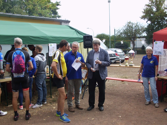 Bild 1: Herwig Lauerer, Vorsitzender des TV Ilbenstadt wird für den 1. Platz in der Familien- und Trimmtour ausgezeichnet.
