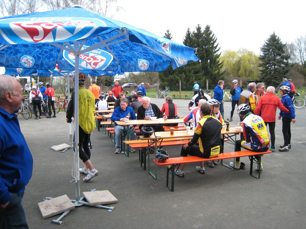 Um 06:00 Uhr haben wir die letzten Vorbereitungen für unsere diesjährige Frühjahrs-RTF getroffen. Vor allem galt es, heißen Kaffee für Helferinnen und Helfer sowie für die ersten Starterinnen und Starter vorzubereiten. Um 07:00 Uhr erschien der harte Kern der Radsportler am Start, musste sich aber bis zur offiziellen Startfreigabe um 08:00 Uhr mit Kaffee, einem kleinen Imbiß und angeregter Unterhaltung mit Gleichgesinnten die Zeit vertreiben.